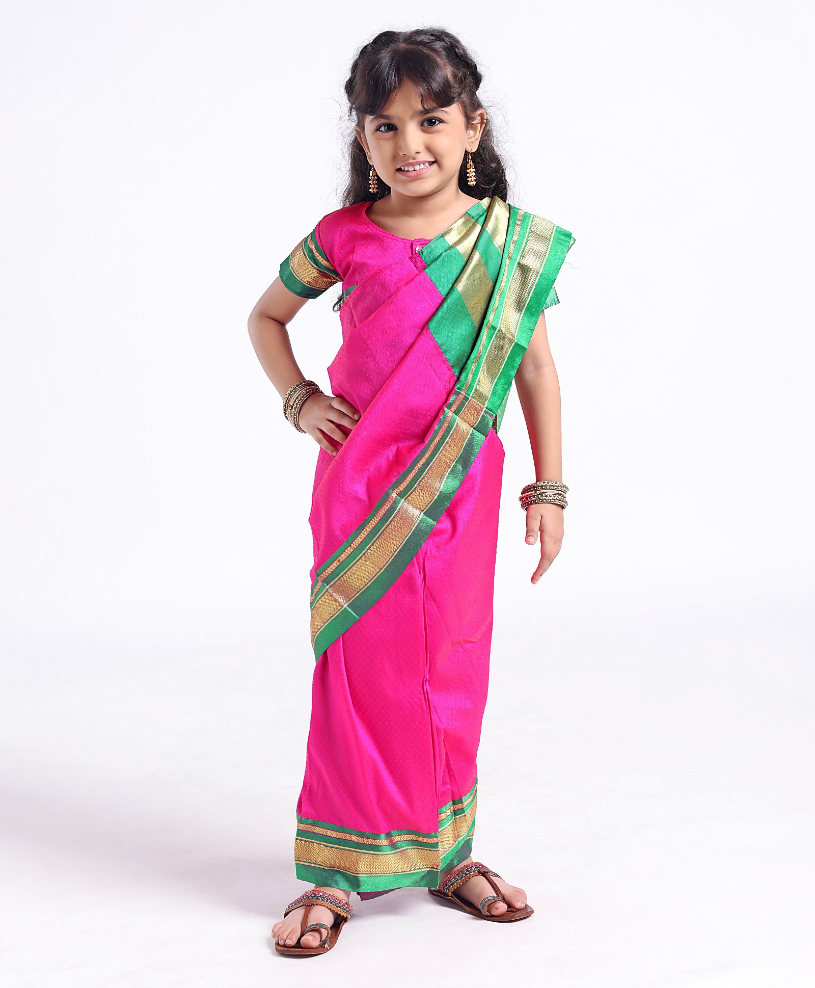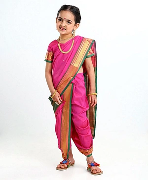Buy Bhartiya Paridhan Half Sleeves Blouse And Nauvari Saree With Jari Border Pink For Girls 6 12 Months Online In India Shop At Firstcry Com 10239313