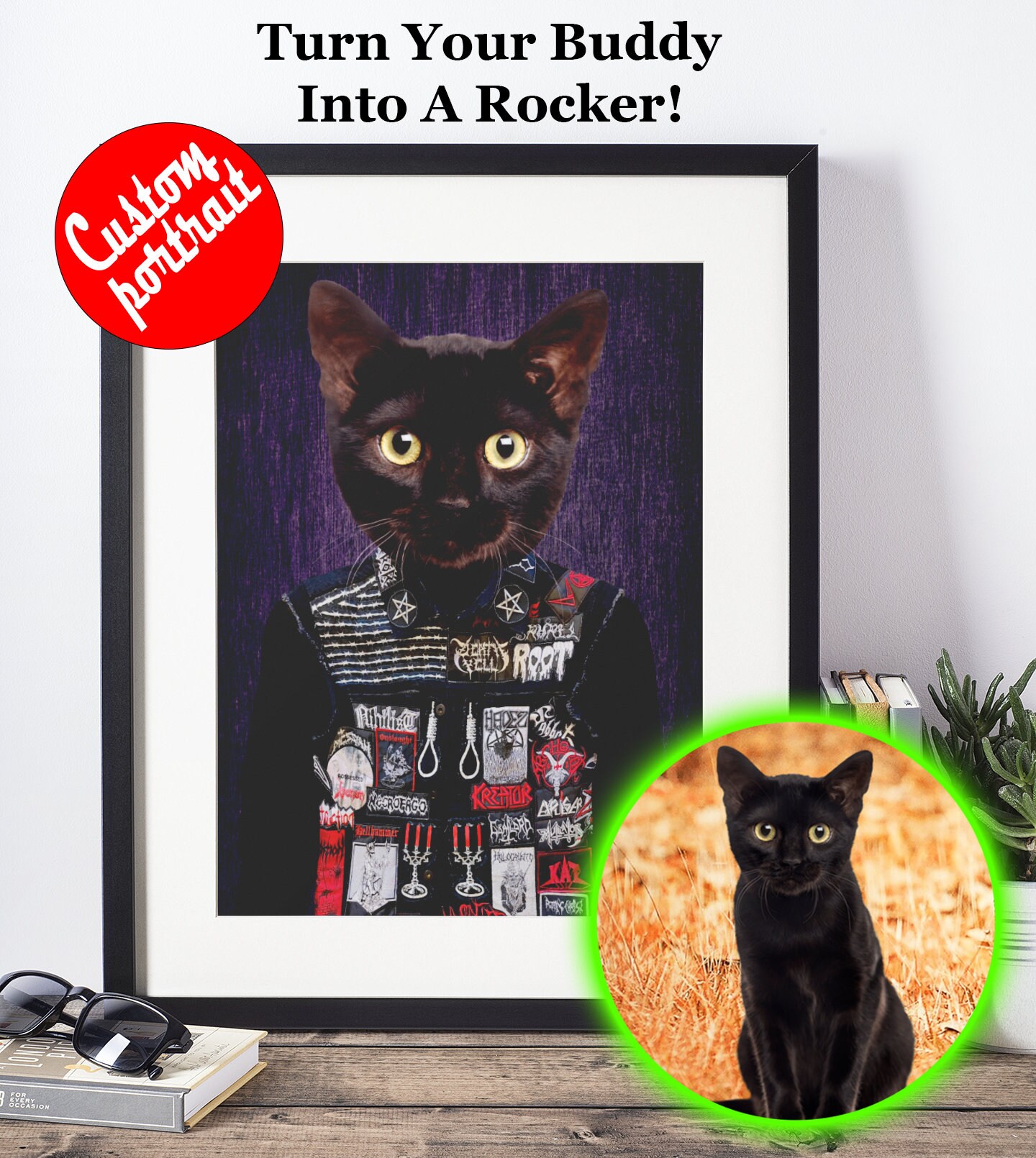 Custom Pet Costume Portrait Custom Dog Portrait Rocker Cat Etsy