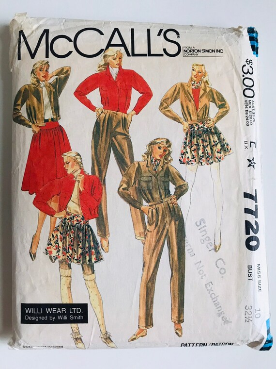 Mccalls 7720 Willi Wear By Willi Smith Misses 1981 Jacket Etsy